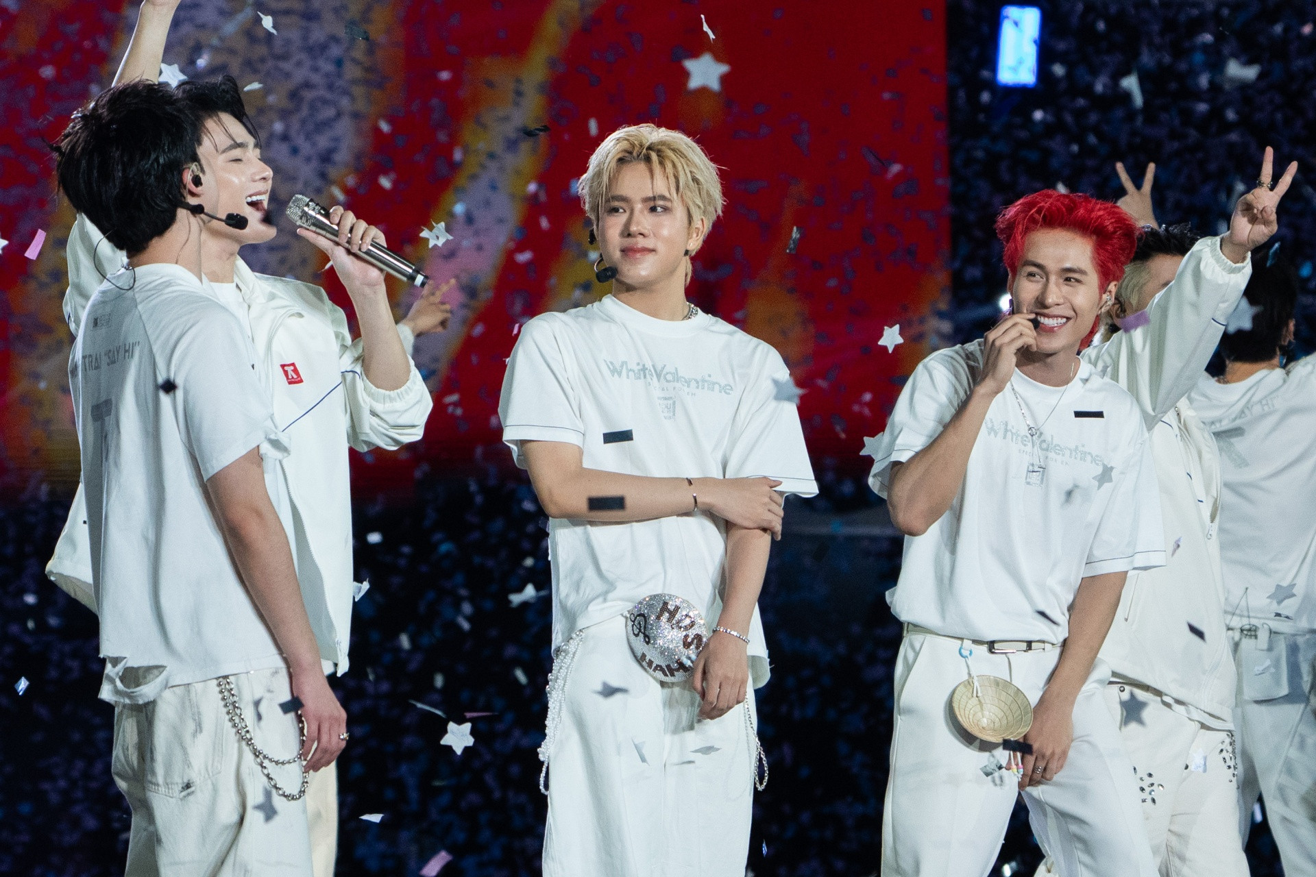 Xuyên suốt concert, các "anh trai" tặng loạt món quà mang tinh thần Valentine trắng như gấu bông, socola, kẹo marshmallow cho khán giả.