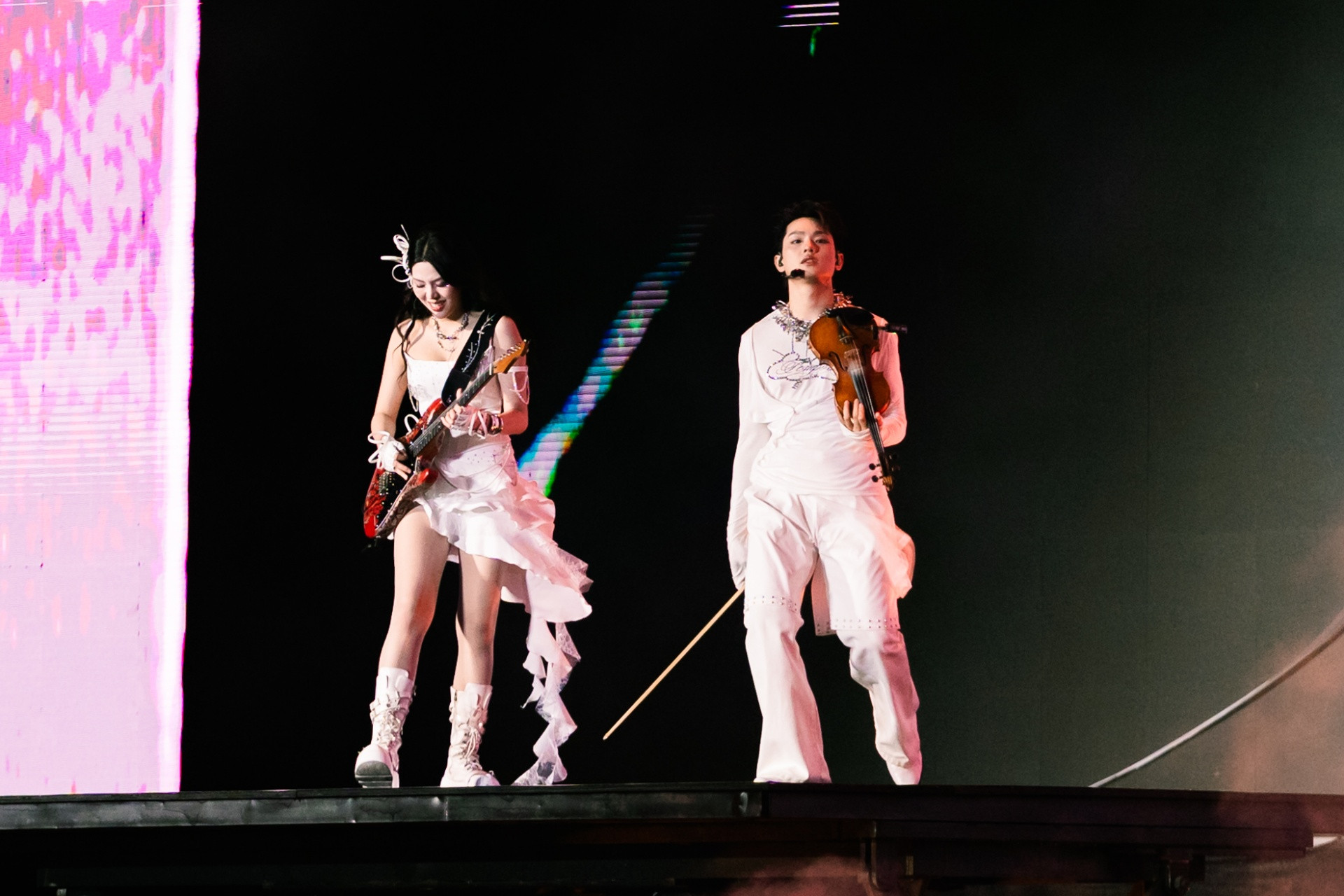 Các giọng ca mang lên sân khấu dàn nhạc cụ gồm trống điện, guitar bass, guitar điện, piano điện, guitar thùng và violin.